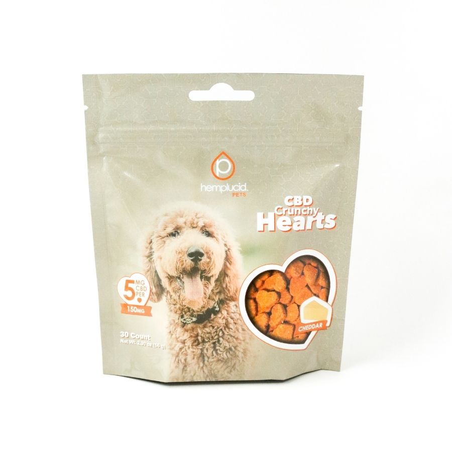 Hemplucid Pets Crunchy Hearts dog treats are made with organic full-spectrum extracts derived from the whole hemp plant using a clean supercritical CO2 extraction method.